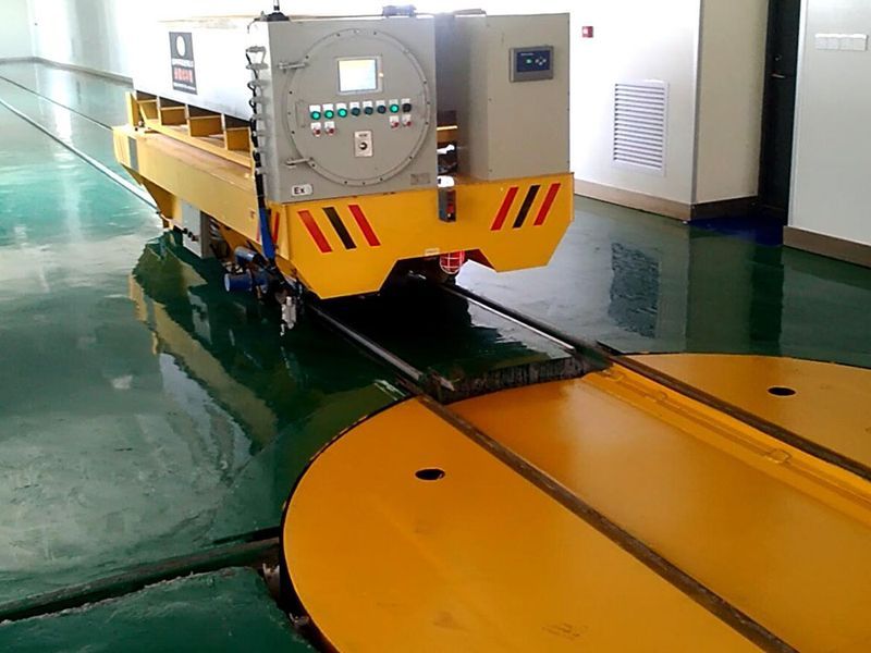 如今在很多的工廠生產過程當中,有許多多地方需要的轉彎半徑過小或者沒法鋪設彎軌的情況或是拐角處,軌道平車電動旋轉平臺非常適應這樣的生產條件。