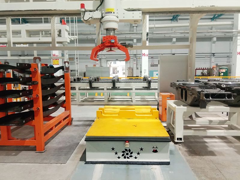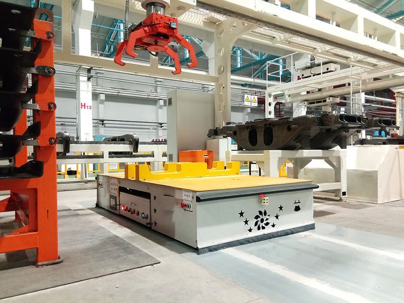 工業(yè)應用中不需駕駛員的搬運車,以可充電之蓄電池為其動力來源。一般可透過電腦來控制其行進路線合并圖冊?以及行為,或利用電磁軌道(electromagnetic path-following system)來設(shè)立其行進路線,電磁軌道黏貼於地板上,無人搬運車則依循電磁軌道所帶來的訊息進行移動與動作。