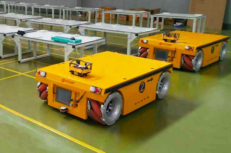 AGV小車是裝備有電磁或光學(xué)等自動(dòng)導(dǎo)引裝置,能夠沿規(guī)定的導(dǎo)引路徑行駛,具有安全保護(hù)以及各種移載功能的運(yùn)輸車。