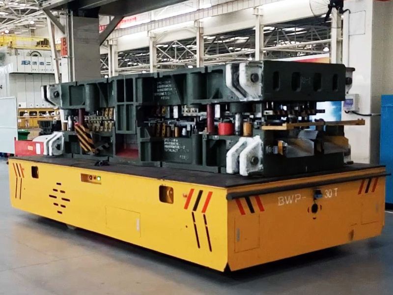 2、無(wú)軌模具轉(zhuǎn)運(yùn)車偏離了對(duì)軌道的依賴,實(shí)現(xiàn)了動(dòng)作的靈活性和自由化。在工廠車間和車間運(yùn)輸物料快捷方便,節(jié)省時(shí)間,降低成本。與傳統(tǒng)的軌道平車相比,它屬于電動(dòng)平車系列的特殊級(jí)別,是電動(dòng)平車行業(yè)重裝和運(yùn)輸?shù)男聦櫋_@種類型的電動(dòng)平車不需要在軌道上行走,并且不受傳統(tǒng)軌道平車在軌道上的依賴。在行走過(guò)程中,它不會(huì)破壞地面,并且可以在平地上前進(jìn),后退,轉(zhuǎn)彎等。可以隨時(shí)改變行進(jìn)方向和路線特征,使其成為運(yùn)行路線不固定的生產(chǎn)場(chǎng)所的理想選擇。該軌道車易于使用,但需要固定的路線,無(wú)論是直軌還是可轉(zhuǎn)動(dòng)軌道,并且操作范圍有限。因此,無(wú)軌橡膠輪電動(dòng)平車誕生了。